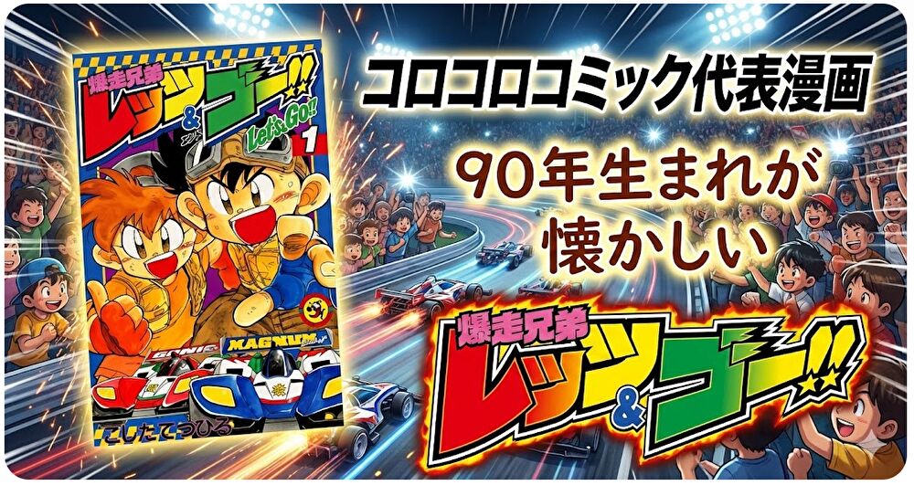 『爆走兄弟レッツ&ゴー!!』は、1994年7月号から1999年10月号まで『月刊コロコロコミック』にて連載された「こしたてつひろ」によるミニ四駆漫画です。 第2次ミニ四駆ブームを巻き起こした記念碑的作品であり、タイヤをボディで覆った「フルカウルミニ四駆」を題材にしています。星馬烈と豪の兄弟が、愛機と共に成長しライバルたちと競い合う姿を描きました。
