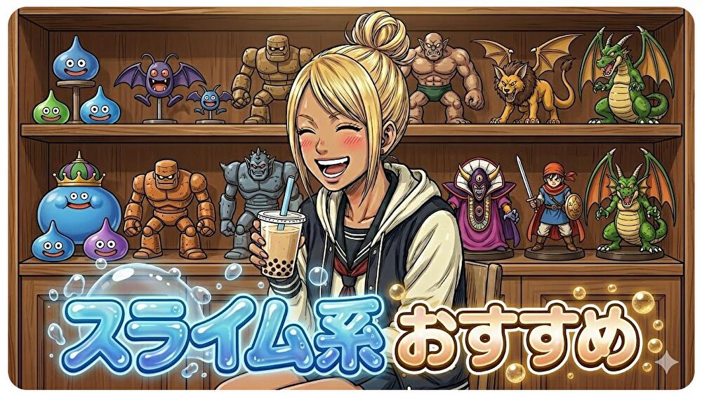 ドラクエの代名詞といえば、やっぱり「スライム」ですよね。あのぷっくりとした涙型のフォルムと、愛嬌のある大きな瞳。