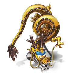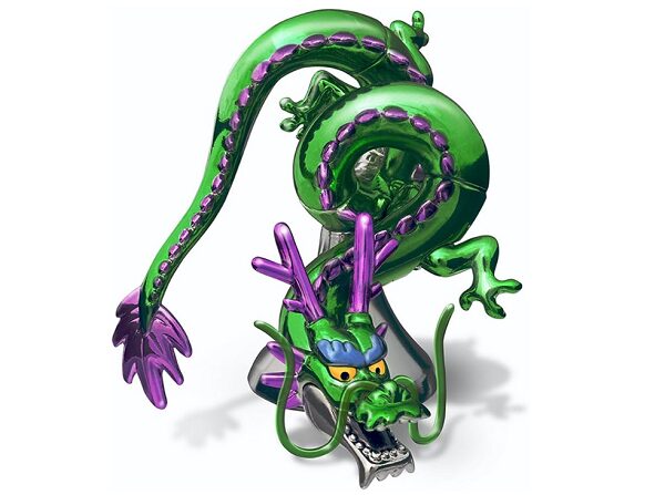 メタリックフィギュアとしての完成度は、シリーズの中でもトップクラスです。複雑にうねる長い身体の造形はダイキャストの重量感と相性抜群で、手に取った時のズッシリとした質感はまさに「神」の重み。最大の特徴である美しいエメラルドブルーの鱗は、メタリック塗装によって宝石のような輝きを放ち、光の加減で陰影が劇的に変化します。その神々しさゆえに再販のたびに即完売する、資産価値すら感じさせる逸品です。